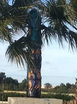 The 10 feet monument[9] was suggested to be covered with plastic similarly to a condom in context of the Catholic Church's opposition to the use of.[17] Subsequently, the monument has been vandalized and then restored. The vandalism involved the damaging of the upper part of the monument. Hence to its phallic appearance the vandalism was described as having had a medical procedure to be circumcised.[18] The Government of Malta has planted large palm trees next to it,[19] probably to conceal it.[20] These trees were later trimmed, during the restoration project after the vandalism, that revealed the monument again.[21]