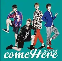 Come Here, stylised as come Here, is the seventh full-length studio album and eighth original album by Japanese boy band KAT-TUN, released in Japan on June 25, 2014, under the label J-One Records.[1] The album contains four previously released tracks—"To the Limit", "Fumetsu no Scrum", "Expose" and "Face to Face"—all of which were number one on the Oricon weekly singles chart.[2]