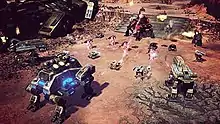 There are two playable factions: the Global Defense Initiative (GDI) and the Brotherhood of Nod. The storyline begins with the world being consumed by the rampant growth of Tiberium, which is threatening to render the earth uninhabitable. Each faction is split into three upgradeable classes: offense, defense and support, each with their own specialized focus. The classes consist mostly of their own unique units, with the only shared unit among classes being the engineer. The offense class is focused on tank-based, front-line combat, relying less on any kind of fortified emplacements or bases. The defense class is focused on infantry-based combat as well as utilization of rudimentary base defenses, and are also the only class to have access to superweapons. It is the only class that allows the player to construct buildings in order to develop their base (analogous with the previous games). The support class is focused on air combat and specialized vehicles to traverse the environment, and is also equipped with special support powers that are used to assist teammates. As it relies on air support, the support MCVs of both factions are able to lift off in the air.[2] Command & Conquer 4 contains two non-playable factions from previous games in the Tiberium Universe: The Scrin (C&C3) and the Forgotten (Tiberian Sun), the latter returning as a minor part of the story as well as a neutral class on the map.[3] Command & Conquer 4 includes a total of about 90 units, including many new units and updated versions of previous Command & Conquer units.[2]