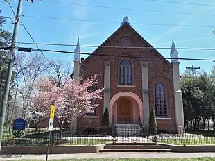 The brick, gable-end-to-the-street, Rundbogenstil building with its recessed, round-arch entrance and round-arch windows has suffered no major alterations in the century that it has served the Jewish community of Statesville.[4][5] It is one of fewer than a hundred nineteenth-century synagogue buildings still standing in the United States.[6]