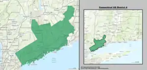 Connecticut's 4th congressional district is a congressional district in the U.S. state of Connecticut. Located in the southwestern part of the state, the district is largely suburban and extends from Bridgeport, the largest city in the state, to Greenwich – an area largely coextensive with the Connecticut side of the New York metropolitan area. The district also extends inland, toward Danbury and toward the Lower Naugatuck Valley.