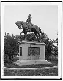 Once on his death bed, General Porter began working with sculptor James E. Kelly to create a monument that reflected how he viewed his legacy. The statue stands today, at Haven Park in Portsmouth, New Hampshire. It is graced by metal tablets at the base, which attempt to convey the error of Porter's court-martial.[25]
