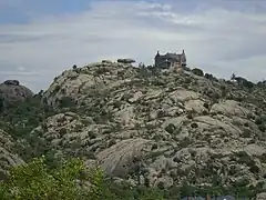 To the south of this mountain range, the terrain descends to the Monte de El Pardo, the third geomorphological unit through which the park runs, covering approximately 16 000 hectares.[8] The granitic materials give way to detrital and sandy elements, the result of the erosion of the Guadarrama and Hoyo mountain ranges, which form an undulating landscape of gentle hills, with an average altitude of 600 m. The Monte de El Pardo sits on an immature soil, easily eroded. Similar characteristics are found in Monte de Viñuelas, eastern appendix of El Pardo.