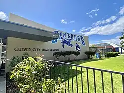 Culver City High School is the main public high school of the Culver City Unified School District (CCUSD) in Culver City, California. It was established in 1951.[2] The school's colors are blue and silver, and the mascot is the centaur. As of 2022, its enrollment was roughly 2,200.[3] Culver City High School is recognized as a California Distinguished School, earning the honor in 2005.[4] The Robert Frost Auditorium is located within the school grounds of Culver City High School.