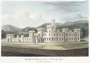 The castle was designed in 1824 by the architect Robert Lugar for William Crawshay II, and built at a cost of approximately £30,000 using locally quarried stone. The castle has 15 towers and 72 rooms. The mistress of the house was Rose Mary Crawshay from 1846 to the death of her husband in 1889. She lived until 1907 but made her home elsewhere.[1]