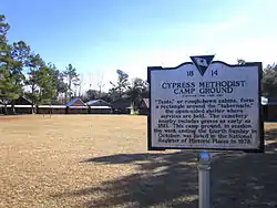 Cypress Methodist Camp Ground is a historic Methodist camp meeting in Ridgeville, Dorchester County, South Carolina. Cypress Camp Ground was functional as early as 1794, and an adjacent cemetery contains graves from the early 1800s. The campground is in the general shape of a rectangle of 34 tents, or cabins, made of rough-hewn lumber. These cabins, rectangular shaped, are generally 1 1/2-stories and contain earthen floors.[2][3]