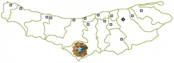 Mount Damavand (Persian: دماوند [dæmɒːvænd] ) is a dormant stratovolcano and is the highest peak in Iran and Western Asia, the highest volcano in Asia, and the 3rd highest volcano in the Eastern Hemisphere (after Mount Kilimanjaro and Mount Elbrus), at an elevation of 5,609 metres (18,402 ft).[8][9][lower-alpha 1] Damāvand has a special place in Persian mythology and folklore. It is in the middle of the Alborz range, adjacent to Varārū, Sesang, Gol-e Zard, and Mīānrūd. It is near the southern coast of the Caspian Sea, in Amol County, Mazandaran Province, 66 km (41 mi) northeast of the city of Tehran.[10]