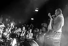 ![]() Daníel Ágúst Haraldsson performing with GusGus in Aarhus, Denmark 2016 | |