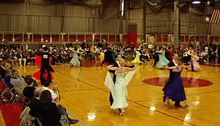 An important distinction is to be drawn between theatrical and participatory dance,[4] although these two categories are not always completely separate; both may have special functions, whether social, ceremonial, competitive, erotic, martial, sacred or liturgical. Other forms of human movement are sometimes said to have a dance-like quality, including martial arts, gymnastics, cheerleading, figure skating, synchronized swimming, marching bands, and many other forms of athletics. Dance is not solely restricted to performance, as dance is used as a form of exercise and occasionally training for other sports and activities. Dance has become a sport for some, with dancing competitions found across the world exhibiting various different styles and standards. Dance has an aesthetic appeal to many people.[5]