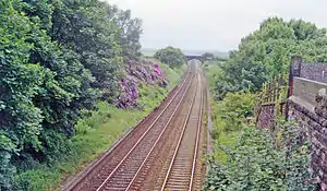 Daresbury railway station was a station in Moore, Cheshire, on the Birkenhead Joint Railway between Runcorn and Warrington. It was named after the village of Daresbury, Cheshire, about a mile away to distinguish it from Moore railway station on the West Coast Main Line. It was open to passengers between 1850 and 1952. It continued to be served by goods trains until full closure in 1965.[1][2]