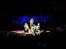 For the show, Carey sang fourteen original songs, including many of her biggest hits up until that point, as well as many songs from Daydream.[27] They included "Fantasy", "One Sweet Day", "Open Arms", "Always Be My Baby", "Forever" and "Underneath the Stars" as well as hits from her previous studio efforts.[27] Carey's following shows in France, Germany, The Netherlands and the United Kingdom were all sold-out as well, receiving warm critical response.[27] During the span of the tour's seven short dates, Carey had already begun working on concepts for her new album Butterfly.[27]