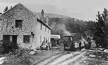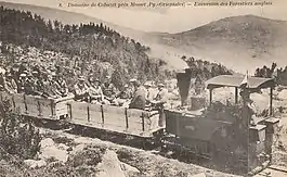 After the commissioning of an aerial cableway, with which the swap-bodies of the tipper wagons could be transported, the Decauville railway line was shortened to a length of 7 kilometres (4.3 mi). The Gare d'Estardé was taken out of service in 1916 and sold to the French army. The rest of the network was finally shut down around 1950, when lorries could be used for transport.[1]