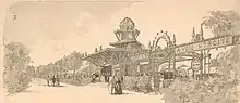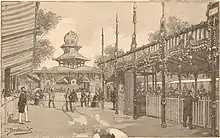 The track was designed by Monsieur Alphand, the general manager of the works, who commissioned Antoine Gaillot and Paul Gallotti of Gaillot et Cie to build the track under the supervision of Monsieur Lion, the exhibition's engineer. The works were led by the Deputy Chief Engineer J. Charton, who was responsible for the metalworking and dealt in particular with the construction of the railway on the Champ de Mars.[3]