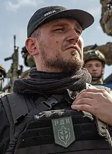 Denis Yevgenyevich Kapustin (Russian: Дени́с Евге́ньевич Капу́стин; born 6 March 1984), commonly known as Denis Nikitin (Дени́с Ники́тин) or by his nom-de-guerre White Rex (Уайт Рекс), is a Russian-German neo-Nazi[1][2] activist, former football hooligan, and militant. Kapustin became a subject of a Schengen Area-wide entry ban since spring of 2019. After moving to Ukraine, he founded the Russian Volunteer Corps (RVC) in 2022 and is the group's leader. The Russian government has labelled him a terrorist.[3]