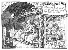 The poem "Nun ruhen alle Wälder" (German for "Now all forests rest") by Paul Gerhardt from 1647 was its model. The exact dating is unclear; some believe that it was written in 1778 in Hamburg-Wandsbek, others that it originated earlier in Darmstadt.[3]