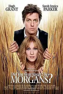 Did You Hear About the Morgans? is a 2009 American romantic comedy thriller film directed and written by Marc Lawrence. Hugh Grant and Sarah Jessica Parker portray the film's protagonists, Paul and Meryl Morgan, a recently separated New York City power couple on the verge of divorce until they witness the murder of Meryl's client. They are forced to enter into temporary witness protection, given new identities, and relocated to a small Wyoming town (the fictional Ray, Wyoming, 45 minutes out of Cody). Supporting roles are played by Sam Elliott, Mary Steenburgen, Elisabeth Moss, and Wilford Brimley. It is the second collaboration of Grant and Parker, following the 1996 film Extreme Measures.