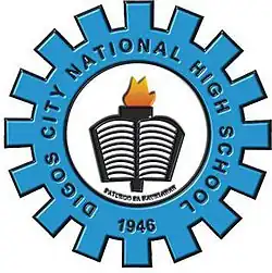 Digos City National High School (DiCNHS), formerly known as Davao del Sur National High School, is situated at Rizal Avenue, Zone II, Digos, is one of the biggest schools in Davao Region, under the jurisdiction of the DepEd Division of Digos. Digos City National High School is also once the second largest secondary school in the country in terms of student population, second only to Rizal National High School in Pasig. Founded in August 1946 with the name of Digos Junior High school.