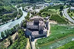 As it crosses the Aosta Valley, the Dora Baltea flows through the city of Aosta (where the Buthier runs into it) and near all the main cities of the lower Aosta Valley: Châtillon, Saint-Vincent, Verrès and Pont-Saint-Martin. After it enters Piedmont, it passes through the city of Ivrea and a good part of Canavese, gets from its right hand the waters of the Chiusella and reaches the Po at Crescentino, a little downstream from Chivasso.