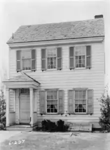The Douglass House is a historic house currently located at the corner of Front and Montgomery Streets in the Mill Hill neighborhood of the city Trenton in Mercer County, New Jersey. It served as George Washington's headquarters prior to the Battle of Princeton on January 3, 1777.[3] Listed as the Bright–Douglass House, it was documented by the Historic American Buildings Survey in 1936, when the house was located in Mahlon Stacy Park near the Delaware River.[4] It was added to the National Register of Historic Places on December 18, 1970, for its significance in architecture, military and social history.[5] It was added as a contributing property to the Mill Hill Historic District on December 12, 1977.[6]