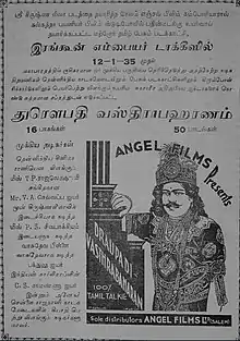 A poster of Draupadi Vastrapaharanam (Thanavanikan Magazine 1935, Rangoon)