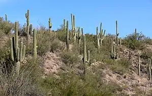 The Sonoran Desert landscape shows the heavy dispersal of host cacti.