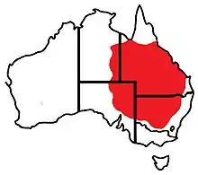 The eastern hooded scaly-foot is found in inland New South Wales, Victoria, eastern South Australia, inland Queensland and adjacent parts of the Northern Territory.[8][2][11][10] It is found in dry to arid zones in a variety of open habitats ranging from stony plains and dry woodlands to arid mallee, mulga scrubs and spinifex-dominate desert grasslands.[8][2][11][10] It prefers stony and heavy soils and is dependent on large, interconnected territories.[8][2][11][10] Due to its inability to sustain or rapidly recover from aerobic activity, this species will shelter in soil cracks, grass and under debris, as well as large burrows to avoid predation.[8][2][11][10]