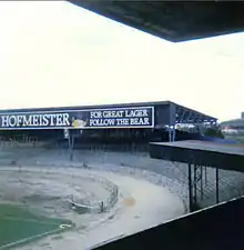 The Tote End or simply the Tote was a large section of covered terracing behind one of the goals. Originally built in 1935, the Tote End terrace was built following the curve of the greyhound racing track. It had a small covered section in the South-West corner.
