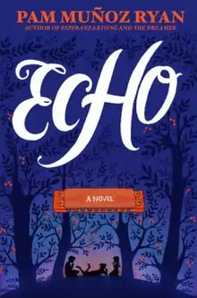Echo is a middle grade historical fiction novel written by Pam Muñoz Ryan, illustrated by Dinara Mirtalipova, and published by Scholastic Press in 2015. It is set in Germany and America, primarily in the years leading up to World War II and details how a mysterious harmonica and the music it makes ties together the lives of three children: Friedrich Schmidt, an intern at the Hohner factory; Mike Flannery, an orphan in Philadelphia; and Ivy Maria Lopez, daughter of migrant farm workers. It was named a Newbery Honor book in 2016.
