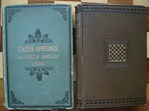 The first edition of the book was published in 1889. Later editions were published in 1893, 1896, and 1910.[6][7] It was one of the first opening books written in columnar form: columns of move-sequences thought to constitute best play, presented in chess notation and concluding with a symbol indicating the analyst's assessment of the final position (such as "equal", "White wins", or "advantage to Black").[8] The book also set forth a number of general principles,[9][10] many of which are still valid today.[8]