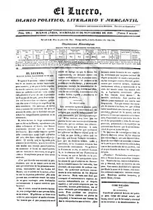 El Lucero, was a newspaper whose content was based on politics, literature and business news, founded by Neapolitan journalist Pedro de Ángelis.[3] It was published in the Imprenta Argentina and Imprenta de la Independencia, between September 7, 1829 and July 31, 1833.[4]