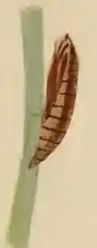 The larvae feed on Carex digitata, rare spring sedge (Carex ericetorum), glaucous sedge (Carex flacca), dwarf sedge (Carex humilis), Carex ornithopoda, Carex pilosa, tufted hairgrass (Deschampsia cespitosa), melic grass (Melica species) and blue moor-grass (Sesleria caerulea). They mine the leaves of their host plant. The mine generally descends from the leaf tip and may occupy the space between the leaf margin and midrib, but may also occupy the entire width of the leaf. Most frass is deposited in the oldest part of the mine. Pupation takes place outside of the mine.[4] Larvae can be found from late summer to the following spring. The species overwinters within the mine. They are yellowish white with a dark brown head.