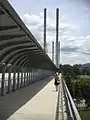 The Eleanor Schonell Bridge, better known as the Green Bridge, is a 390-metre (1,280 ft)-long cable-stayed bridge which crosses the Brisbane River between Dutton Park and the University of Queensland's St Lucia campus, connecting the UQ Lakes and Dutton Park Place busway stations. Its deck is 185 metres long, 20 metres wide and about 18 metres above the river's surface. The bridge was opened on 17 December 2006, and is the first bridge in Australia exclusively designed for buses, cyclists and pedestrians.[2] The bridge cost $55.5 million to construct.[3]