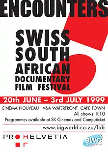 The Encounters South African International Documentary Festival first took place in 1999.[2] Since then, its main objective has been to develop the documentary industry in South Africa, both in terms of increasing production and creating an audience for the genre. The festival actively seeks to support and promote local and African films, filmmakers and festivals to an international market.