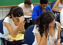 Exame Nacional do Ensino Médio (Portuguese pronunciation: [eˈzɐ̃mi nasjoˈnaw du ẽˈsinu ˈmɛdʒi.u]; English: National High School Exam), shortened as Enem (Brazilian Portuguese: [eˈnẽj]), is a non-mandatory, standardized Brazilian national exam, which evaluates high school students in Brazil.[1] The ENEM is the most important exam of this kind in Brazil, with more than 8.6 million registered candidates in 2016. It is the second largest in the world after China's National Higher Education Entrance Examination.[2][3]