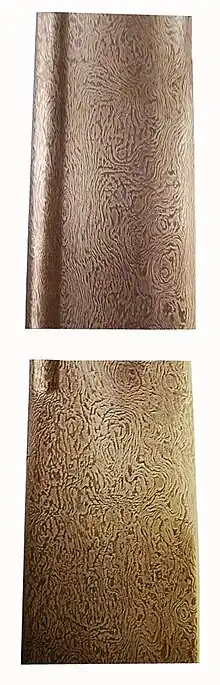 The proven sites of crucible steel production in south India, e.g. at Konasamudram and Gatihosahalli, date from at least the late medieval period, 16th century.[19] One of the earliest known potential sites, which shows some promising preliminary evidence that may be linked to ferrous crucible processes in Kodumanal, near Coimbatore in Tamil Nadu.[20] The site is dated between the third century BCE and the third century CE.[21] By the seventeenth century the main centre of crucible steel production seems to have been in Hyderabad. The process was apparently quite different from that recorded elsewhere.[22] Wootz from Hyderabad or the Decanni process for making watered blades involved a co-fusion of two different kinds of iron: one was low in carbon and the other was a high-carbon steel or cast iron.[23] Wootz steel was widely exported and traded throughout ancient Europe, China, the Arab world, and became particularly famous in the Middle East, where it became known as Damascus steel.[24][25]