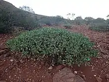 • Eremophila flaccida Chinnock subsp. flaccida[6] which has egg-shaped leaves with a distinct stalk;