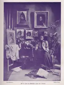 Her works have been exhibited in multiple salons, including Nîmes, Montpellier, Lyon, Niort, Draguignan, Aix-en-Provence, and her hometown Marseille.[2] Starting from 1879, her paintings have been exhibited in Paris as well, including in the Paris Salon, where she has presented at least 13 paintings between 1879 and 1900, primarily portraits.[4][5][6][7][8][9][10][11][12][13][14][15][16] Many portraits were of Marseille locals, and known or attributed portraits include one she painted of the painter Alfred Casile,[2] of Gabriel Fabre, and of her husband Pierre Jean. (Her husband, incidentally, had presented a portrait of her at the salon two years earlier.[17])
