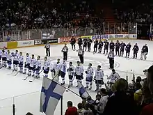 At the 2011 IIHF World Championship, Finland won its second world title, beating the Swedish national team by a score of 6–1 in the final. As two highly ranked neighboring countries, Sweden and Finland have a long-running competitive tradition in ice hockey. Before the game, mainstream media in both countries titled the match "a dream final".[4][5] After a goalless first period, Sweden opened the game with a 1–0 goal by Magnus Pääjärvi in the second period at 27:40. Seven seconds before the period's end, Finland's Jarkko Immonen scored to tie the game 1–1. Finland took the lead early in the third period, scoring two goals at 42:35 and 43:21 by Nokelainen and Kapanen. Sweden then took a time-out with ten minutes left to play but did not manage to regroup, and Finland scored a further three goals courtesy of Janne Pesonen, Mika Pyörälä and Antti Pihlström to clinch the title.[6] Team Finland's Jarkko Immonen led the tournament in both goals and points scored, with 9 and 12 respectively.