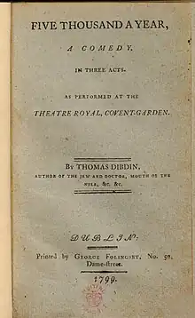 Five Thousand a Year is a 1799 comedy play by the British writer Thomas John Dibdin.[2]