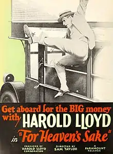 For Heaven's Sake is a 1926 American silent comedy film directed by Sam Taylor and starring Harold Lloyd. It was one of Lloyd's most successful films and the 12th-highest-grossing film of the silent era, earning $2,600,000.[2]