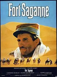 Fort Saganne is a 1984 French war film directed by Alain Corneau and starring Gérard Depardieu, Philippe Noiret, Catherine Deneuve, and Sophie Marceau. Based on the 1980 novel of the same name by Louis Gardel, the film is about a soldier of humble beginnings who volunteers for service in the Sahara in 1911. After falling in love with the beautiful young daughter of the regional administrator, he is ordered to go on missions in the desert, where he engages in several successful campaigns and experiences severe loneliness. Later, while on a diplomatic mission to Paris, he has a brief affair with a journalist. Returning to Africa, he leads a gallant defense against a feared sultan and is awarded the Grand Cross of the Legion of Honour. He returns to his home a national hero and marries the young girl he has not forgotten, but their happiness is interrupted by the onset of World War I.
