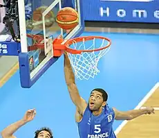 France was named as one of four co-hosts for EuroBasket 2015.[27] At the Euro finals, France was aided by the return of EuroBasket 2013 MVP Tony Parker to the national team. With their floor general back in the fold, the French were tabbed as one of the early favourites to win the tournament and repeat. Being placed into Group A to begin their title defense, France was tasked with Finland as their first opponent. In front of an exuberant home crowd, France got off to a quick start to possess the lead after the first quarter. The French would continue to feed off this momentum as they extended their advantage heading into halftime up 45–37. Although in the third and fourth quarters Finland mounted a vigorous comeback, to send the match into overtime. However, France would not be denied on their home soil, as they pulled out an emotional 97–87 victory.[28] After the win, France would go on to triumph through their remaining four matches in group play to clinch a place into the Round of 16.
