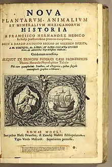 Title page of Recchi's 1651 edition of Nova plantarum, animalium et mineralium Mexicanorum historia