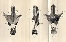 Nopcsa discovered and named several species in his lifetime. In 1899 he named the species Mochlodon robustus,[32] which he later renamed to Rhabdodon robustum in 1915.[33] He also named Struthiosaurus transylvanicus, which he described in 1915.[6][34] In 1928 he named the Teinurosaurus (meaning "extended tail lizard").[35][36] He named the turtle species Kallokibotion bajazidi, which literally means 'beautiful box of Bajazid'. The reason for this name was that the shell reminded him of Bajazid's arse.[6]