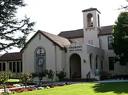 Fremont High School was originally named West Side Union High School, the first school opened in the West Side Union High School District. In 1923, it opened in rooms of the Sunnyvale Grammar School as the only high school in the Sunnyvale–Cupertino (West Valley) area, and then moved to a temporary building after purchase of the school site in 1923. The school building was designed in 1925 by noted California school architect W. H. Weeks, after the necessary bond referendum passed on the third attempt. On March 27, 1925, the board of trustees unanimously voted to change the name of the school and district to Fremont Union High School.[3]
