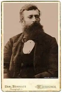 Heck was born in Ekenäs to Lieutenant Erik (1792–1848) and Ulrika Charlotta Sofia Aminoff (1806–1885). A brother was the canal engineer Berndt. Fridolf went to work on a ship at the age of thirteen and became a boatsteerer on the Russo-Finnish whaleship Graf Berg in 1857 and a sea captain in 1863 from Turku Maritime School. He took an offer during the famine period of 1862-68[1] from Alexander II of Russia for Finns to settle freely beyond the Amur River. He established a settlement in between Nakhodka and Vladivostok in 1868 but the colony fell apart by 1870. He continued to live in the Far East on Askold Island where he hired Michał Jankowski. In June 1879, their settlement was attacked by Hunhuz bandits and his wife was murdered, along with his son and several workers.[2] He married an Ussuri Cosack in 1884 and along with the Bryner (Julius Ivanovich Bryner was the grandfather of Yul Brynner) and Jankowski families, they established the village of Bezverkhovo.[3]