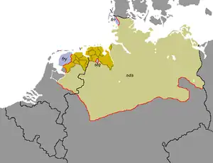 Friso-Saxon (Dutch: friso-saksische tongvallen, friso-saksisch) is a group of West Germanic dialects found around the North Sea coast of the Netherlands and Germany, in an area historically known as Frisia.[1][2] They are dialects of Low German/Low Saxon that have experienced strong influence from a Frisian language.