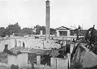 Student assembly after the fire. The ruins are behind the students; the newly-completed Technical Trades Building (right) escaped the fire.[5]