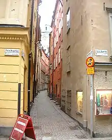 Göran Hälsinges Gränd (Swedish: "Alley of Göran Hälsinge") is an alley in Gamla stan, the old town in central Stockholm, Sweden. Connecting Västerlånggatan to Stora Nygatan, it forms a parallel street to Helga Lekamens Gränd and Ignatiigränd.