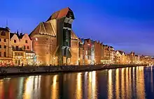The largest medieval port crane in Europe, situated over the river Motława.[31]
